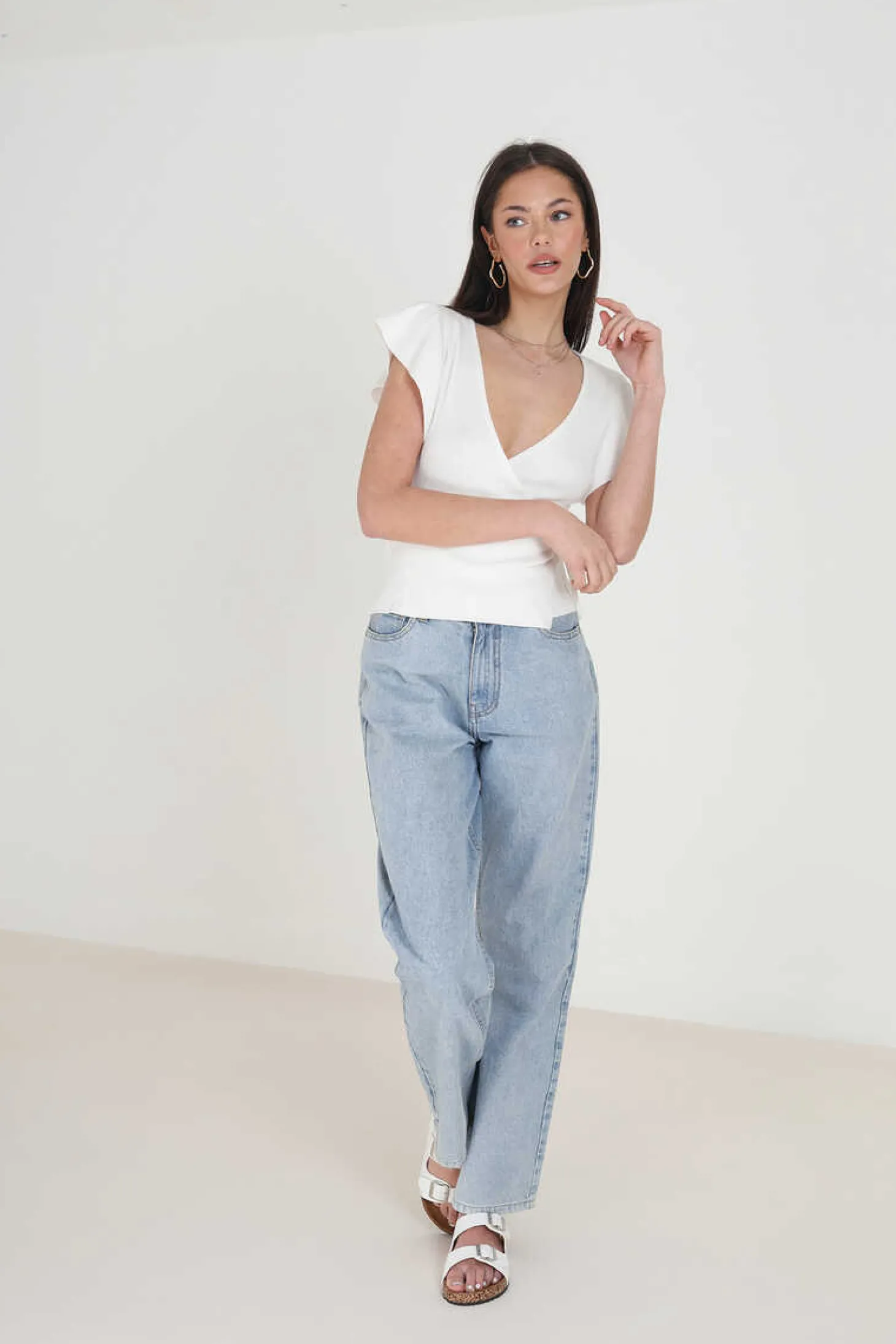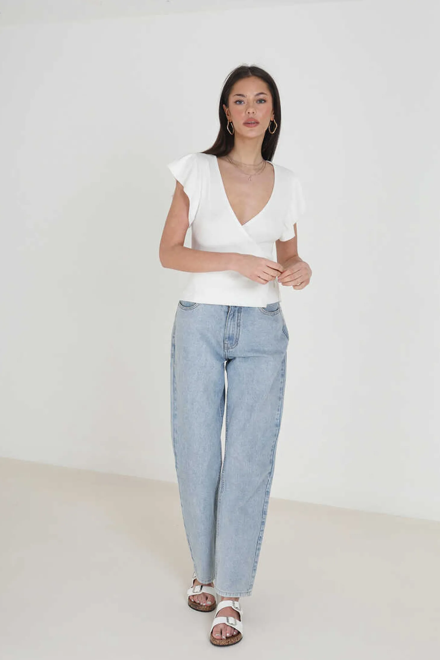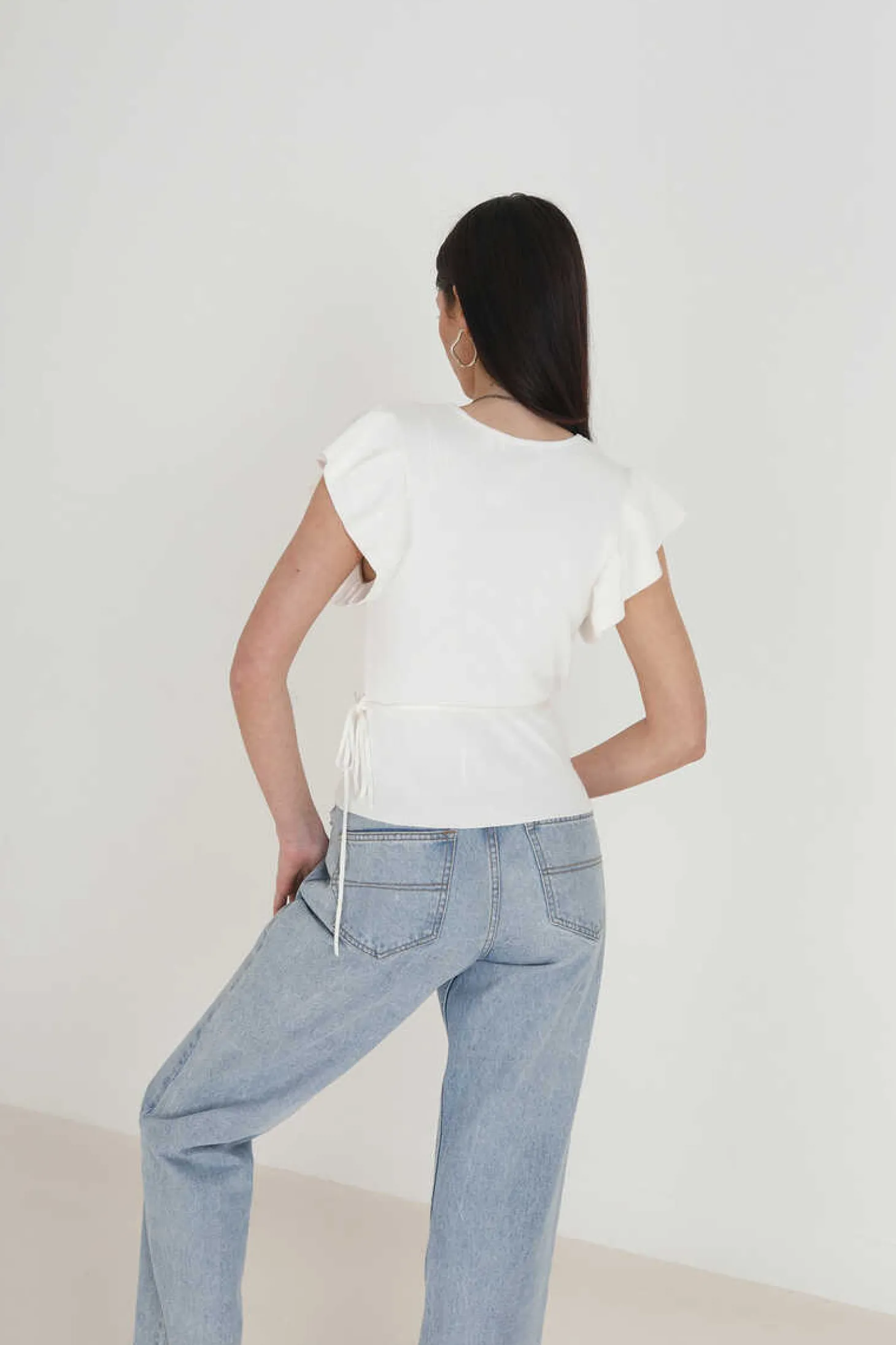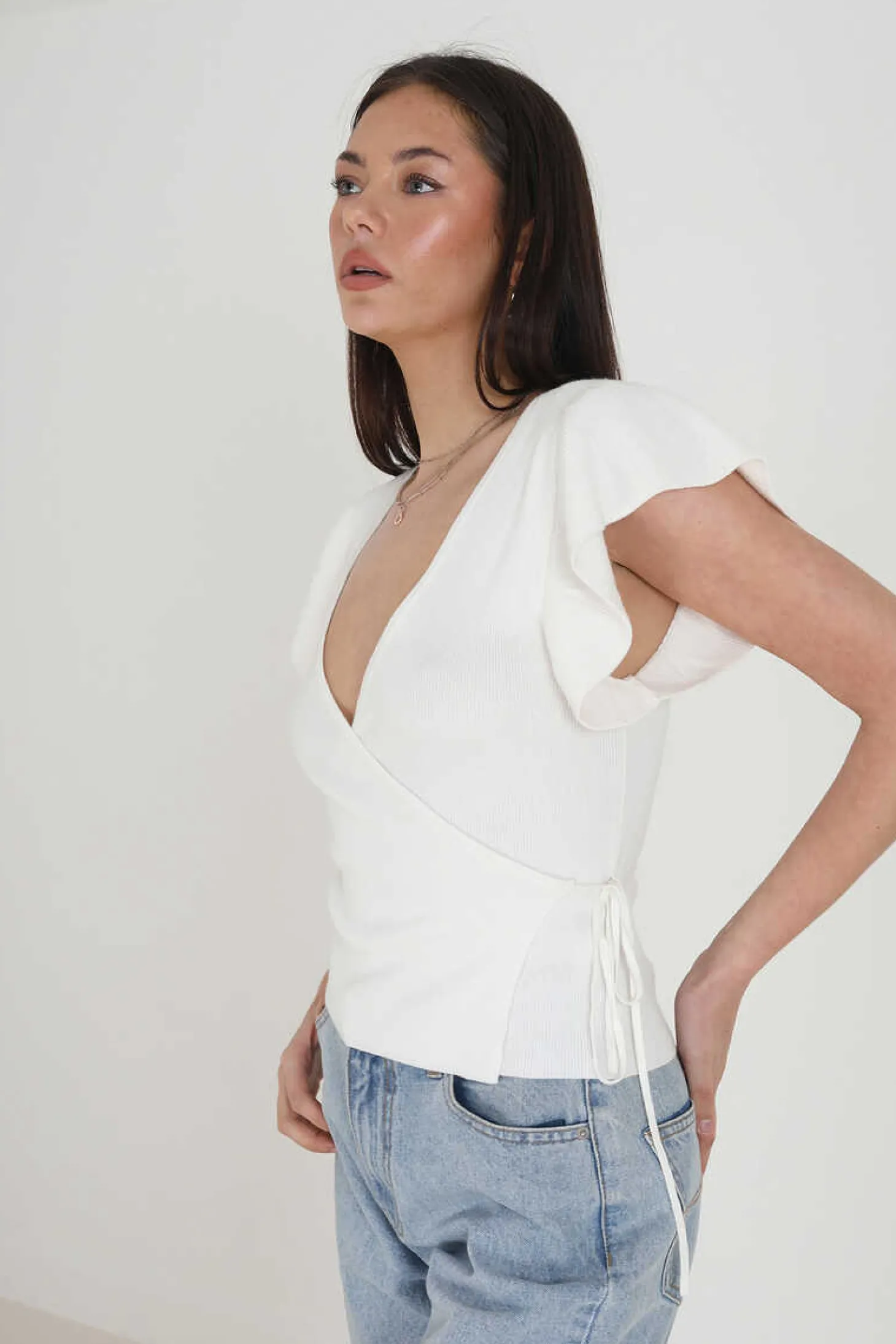 Top Canelado De Manga Curta, Decote Em V, Atado Com Laco