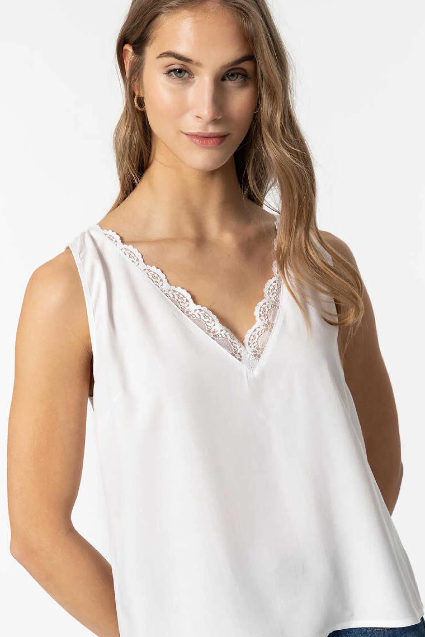 Top Com Manga Cava E Decote Em Bico Com Detalhe De Renda.