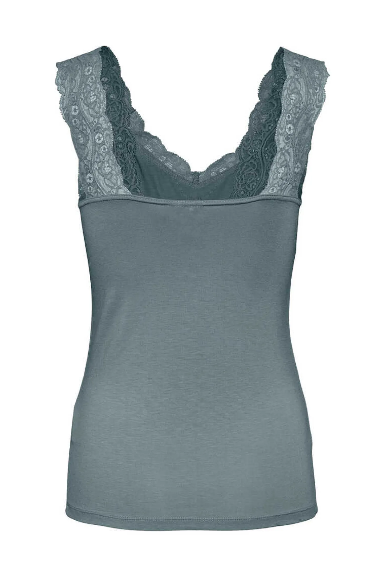 Top De Alcas Com Decote Em Bico E Costas Quadradas. Com Detalhe De Renda No Decote E Nas Alcas.