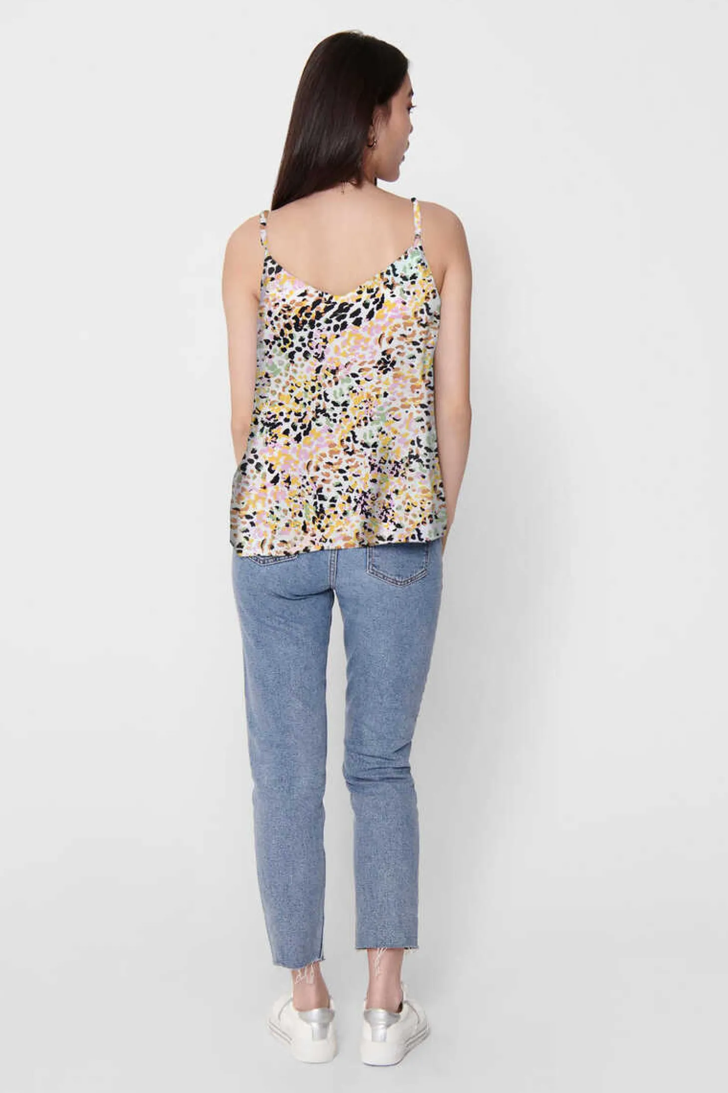Top Sem Mangas, Gola Em Bico E Alcas Espaguete Ajustaveis.