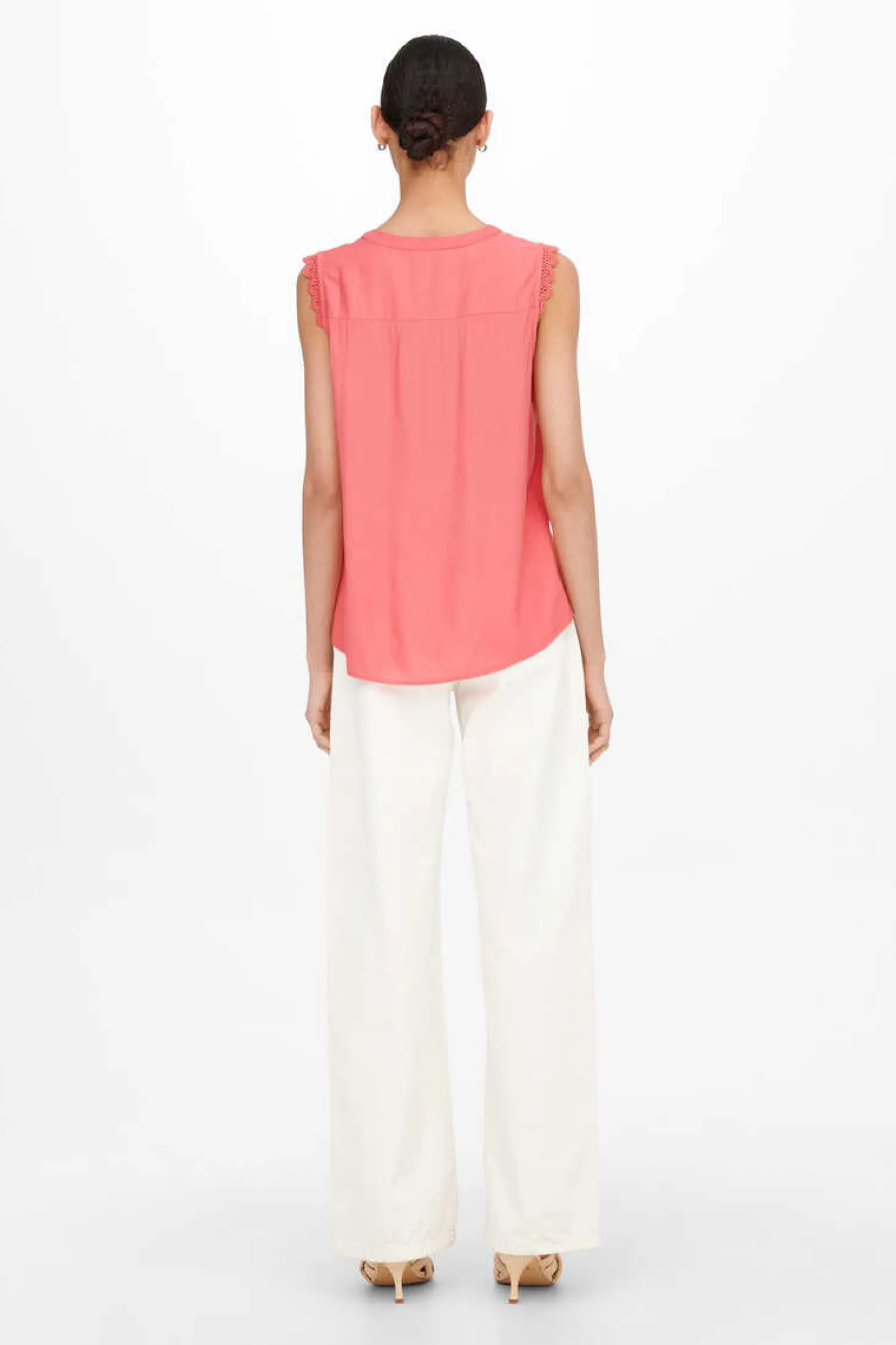 Top Sem Mangas Com Decote Em Bico, Detalhe De Agulha De Crochet Nas Cavas, Corte Folgado E Parte Posterior Mais Comprida.