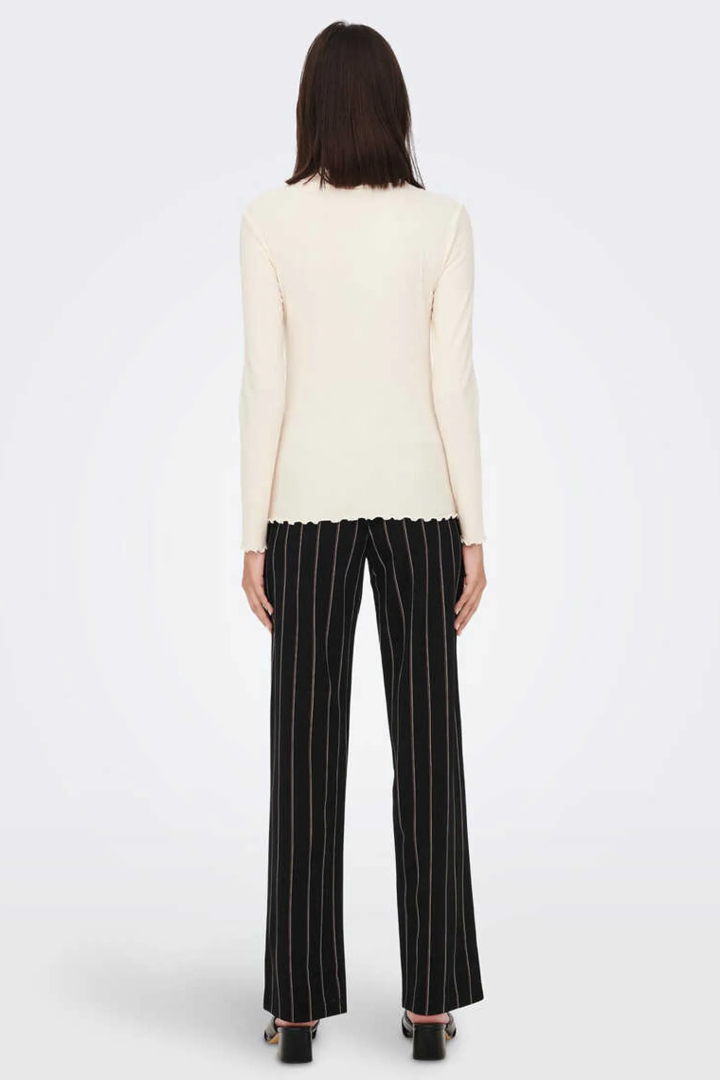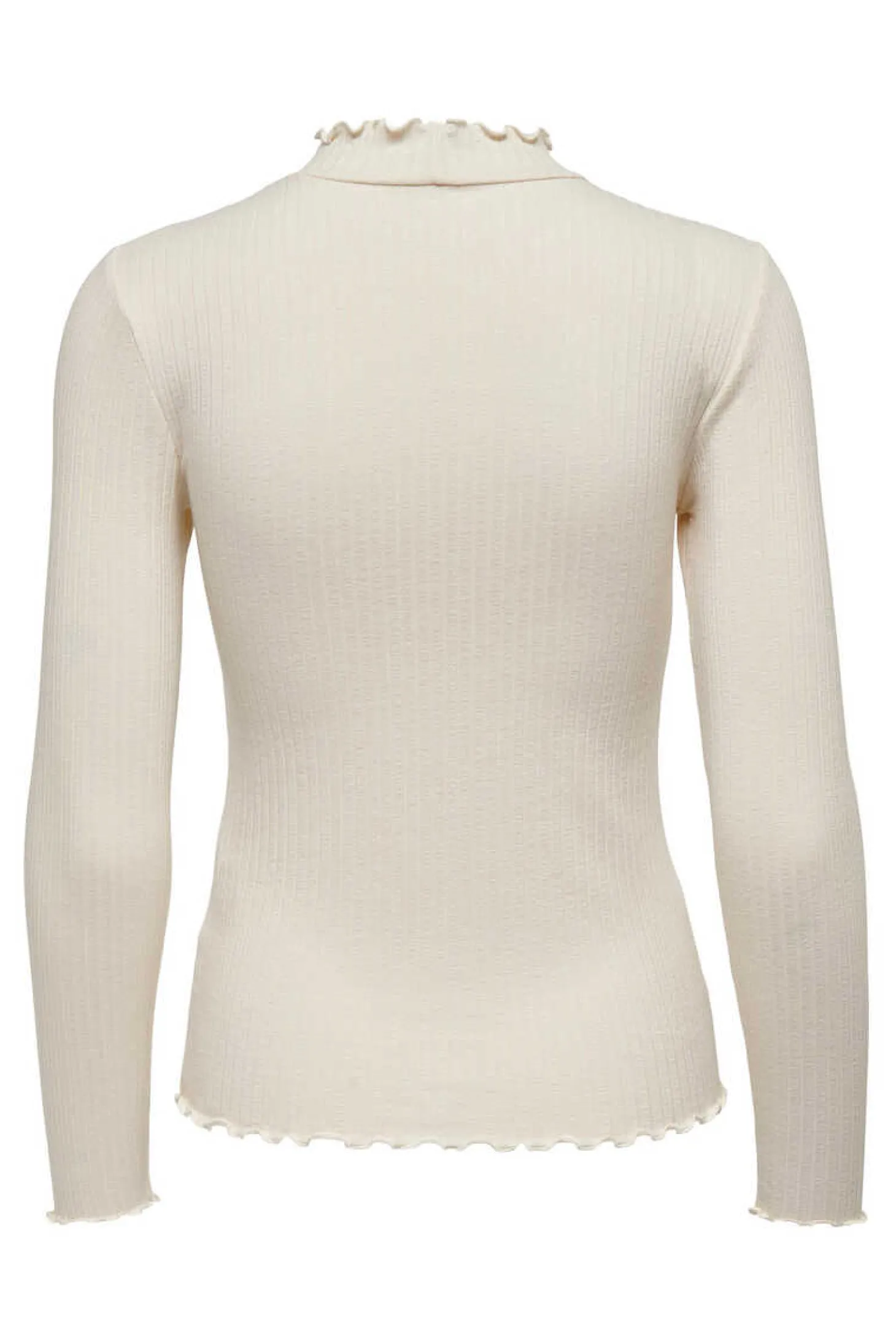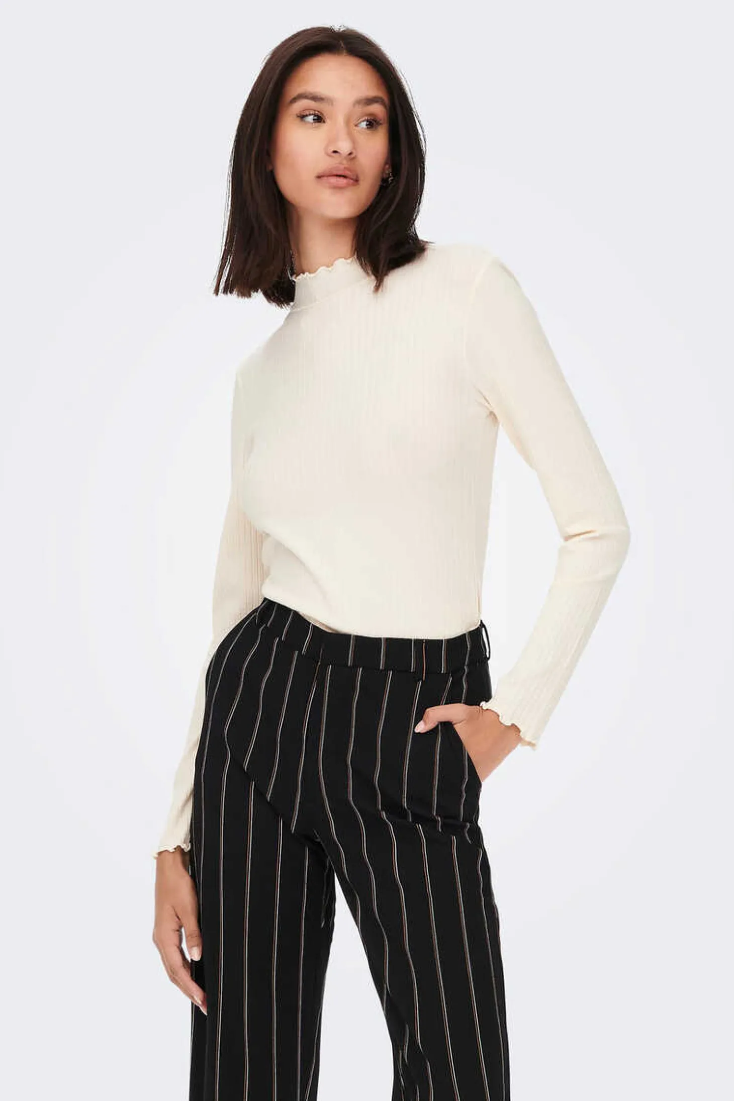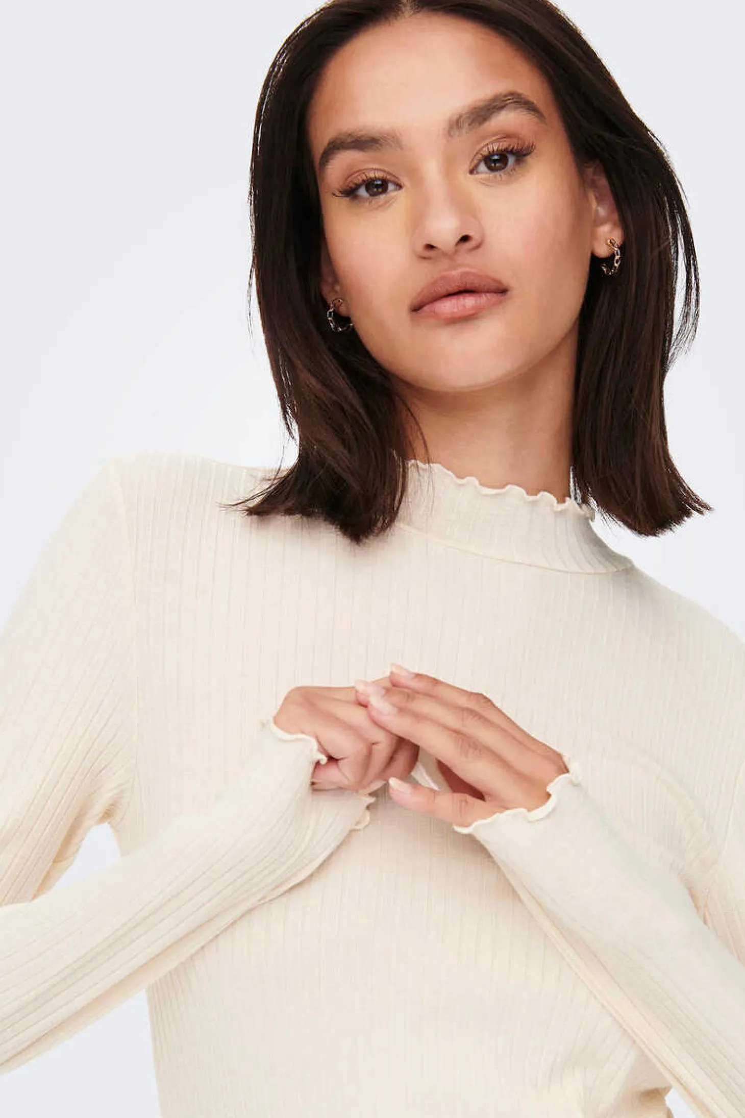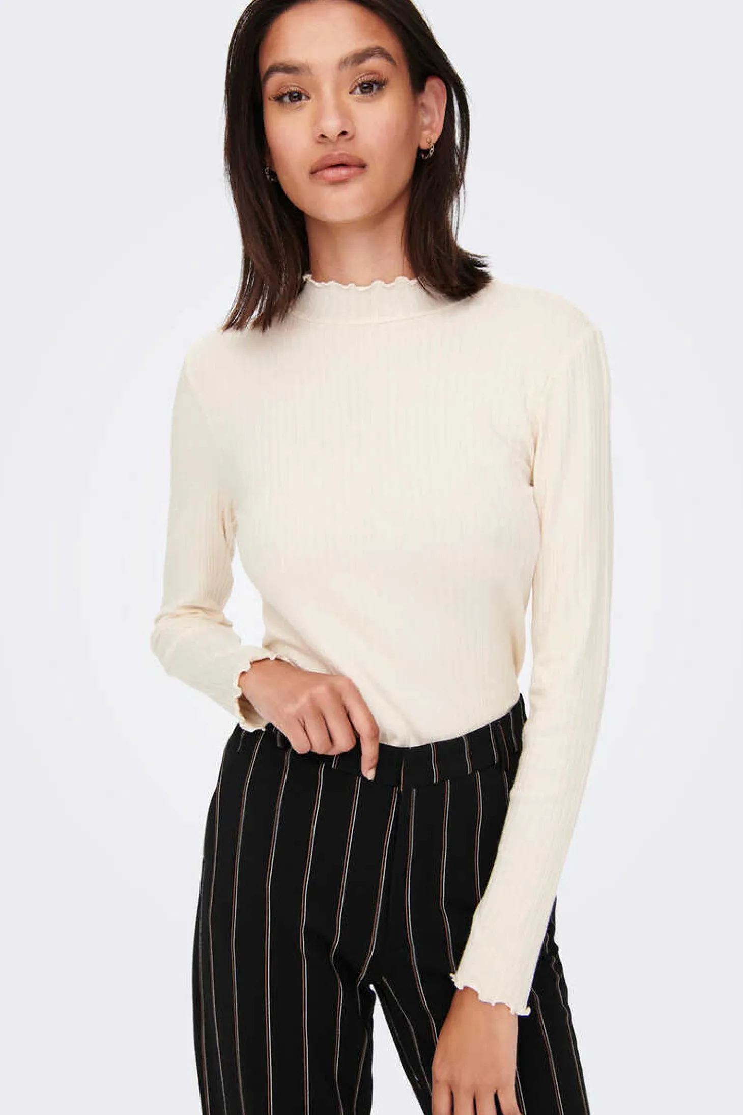 Tampo Com Tecido Nervurado, Mangas Compridas, Gola Perkins, Detalhe No Colarinho E Mangas.
