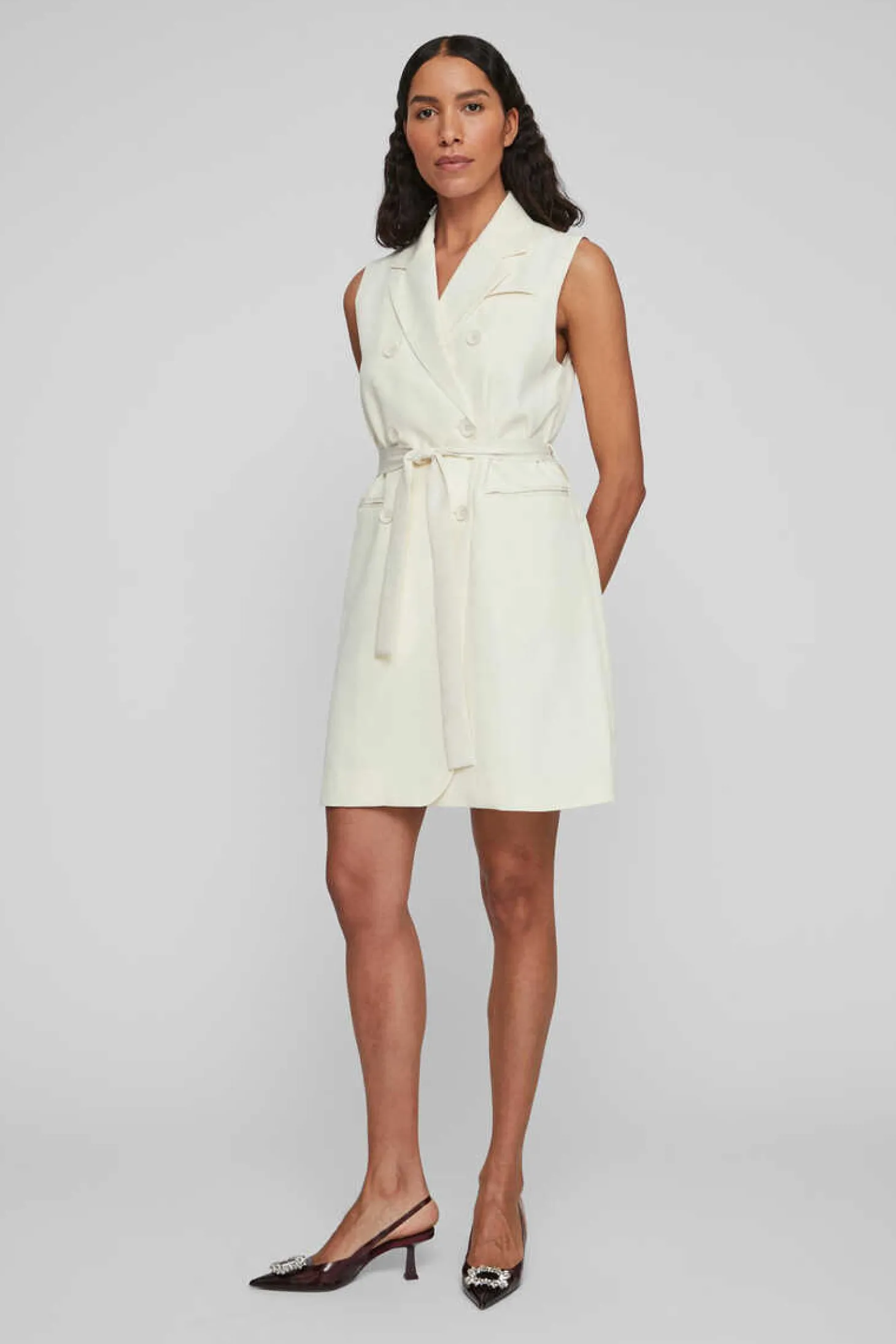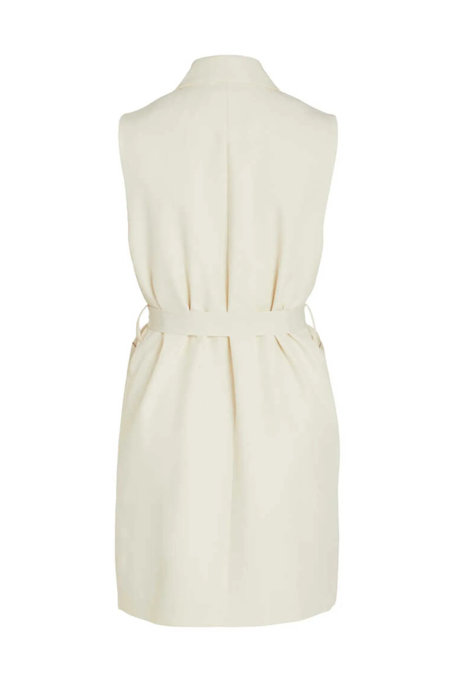 Vestido Colete Estilo Blazer, Gola Com Lapela, Abotoadura Dupla E Cinto Com Lacada Ajustavel.
