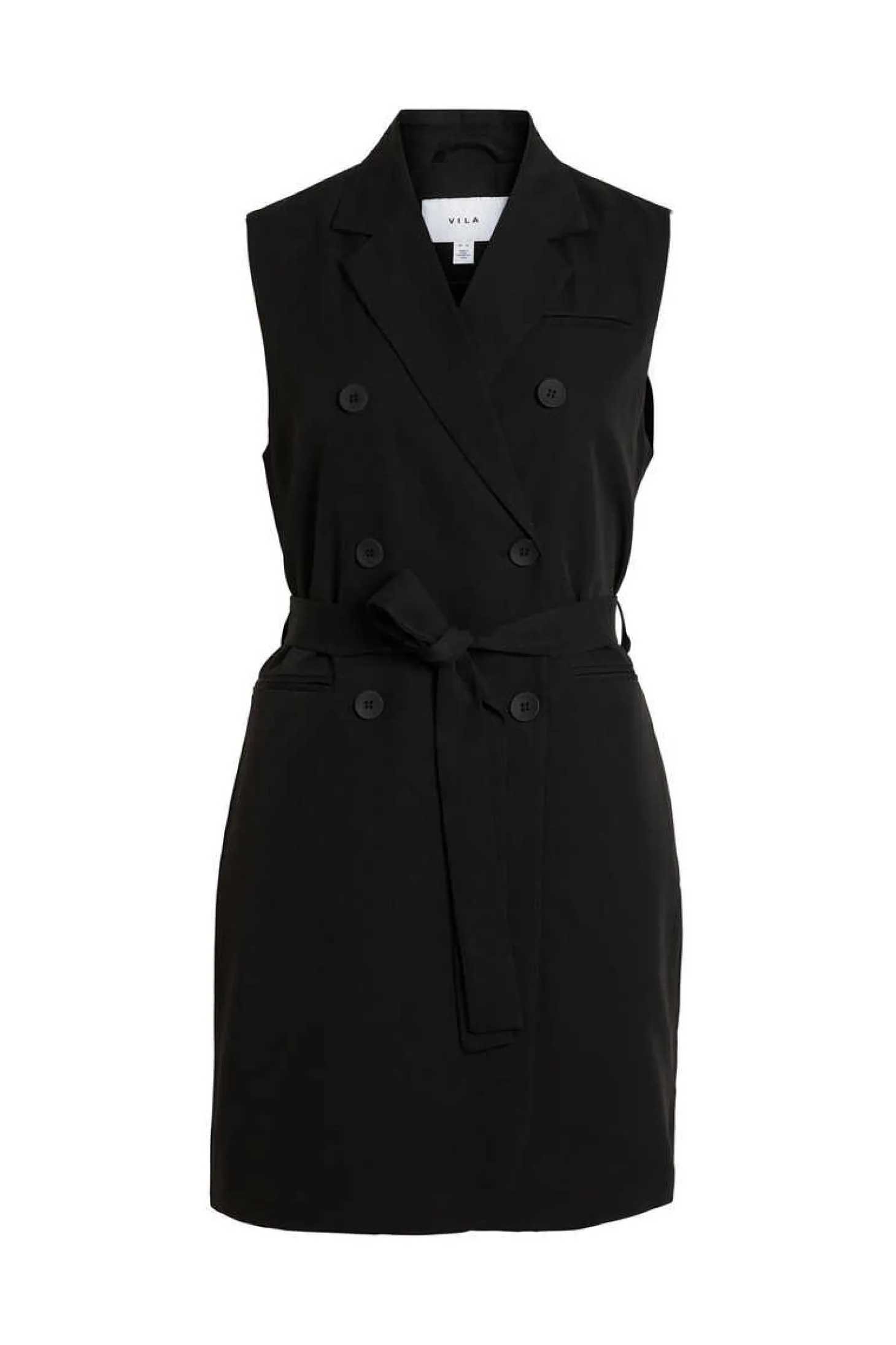 Vestido Colete Estilo Blazer, Gola Com Lapela, Abotoadura Dupla E Cinto Com Lacada Ajustavel.