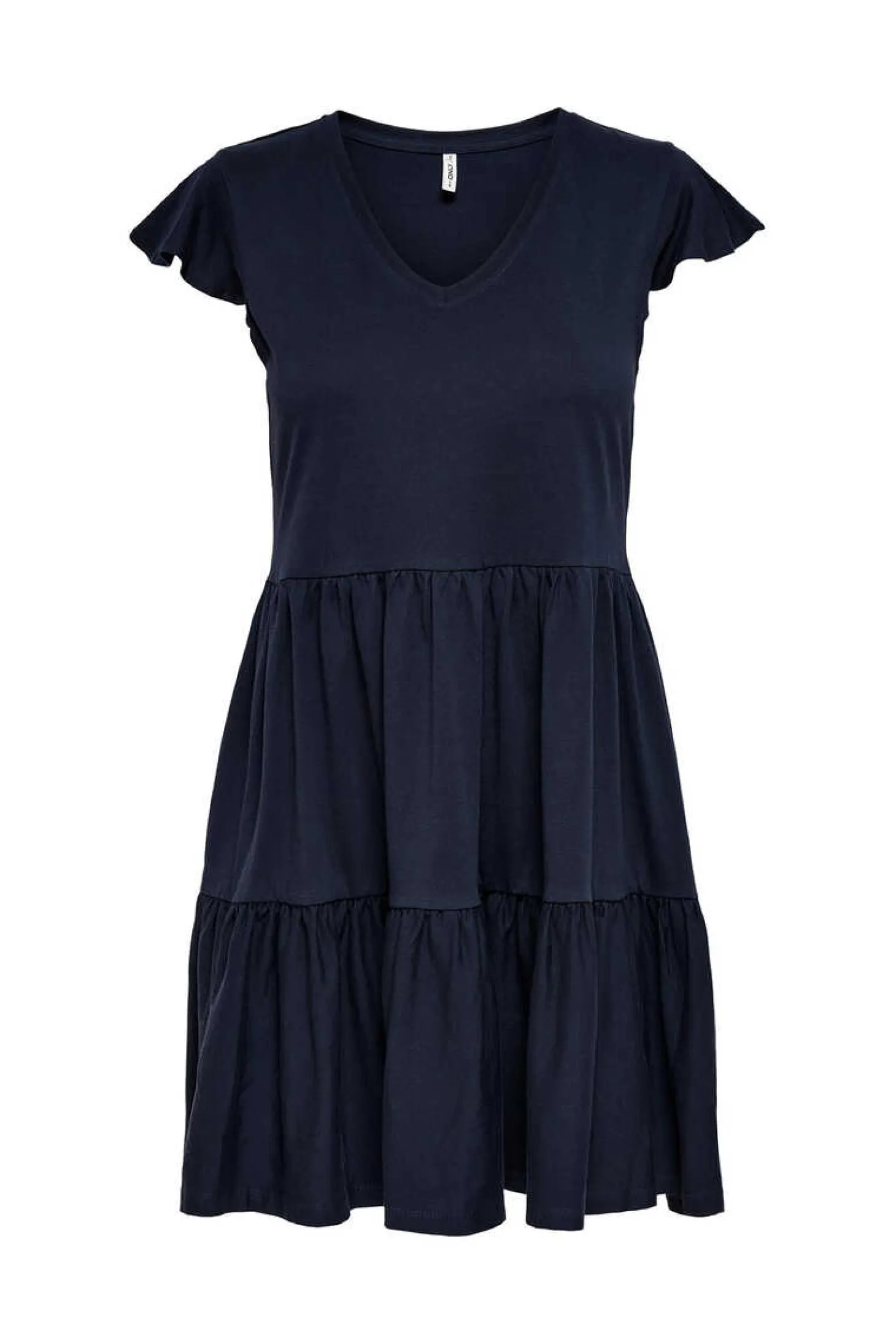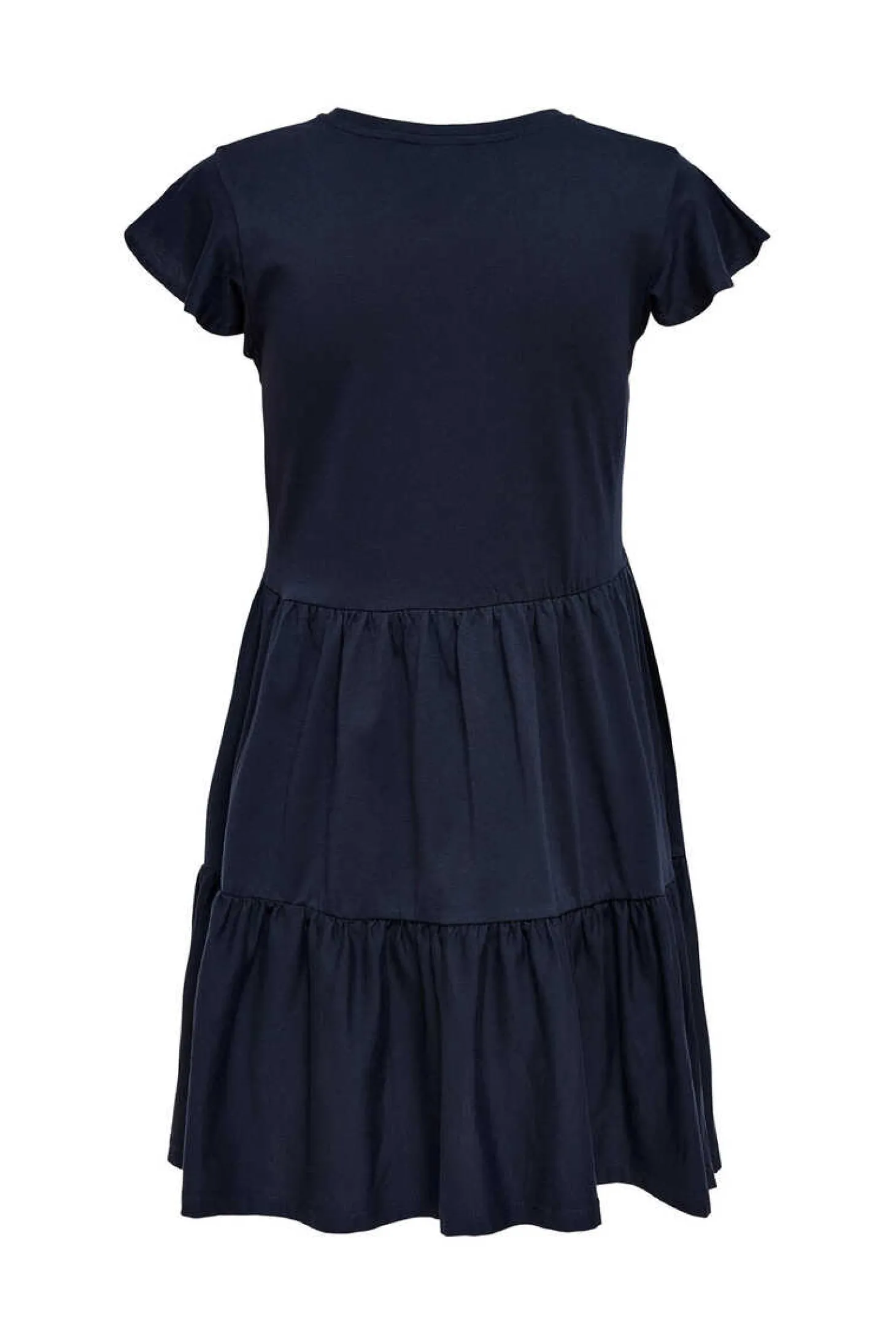 Vestido De Manga Curta Com Decote Em Forma De Bico. Detalhes De Folhos