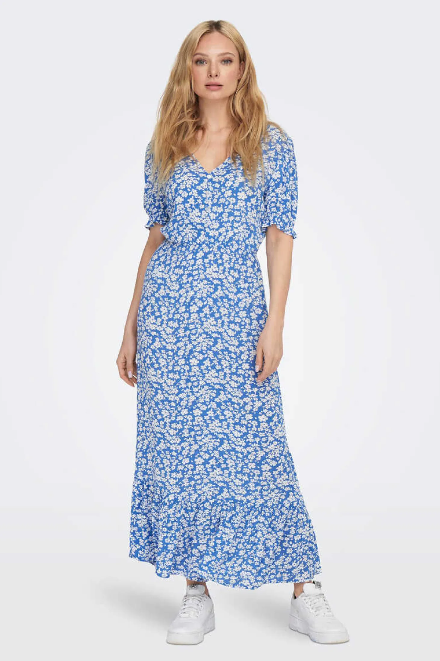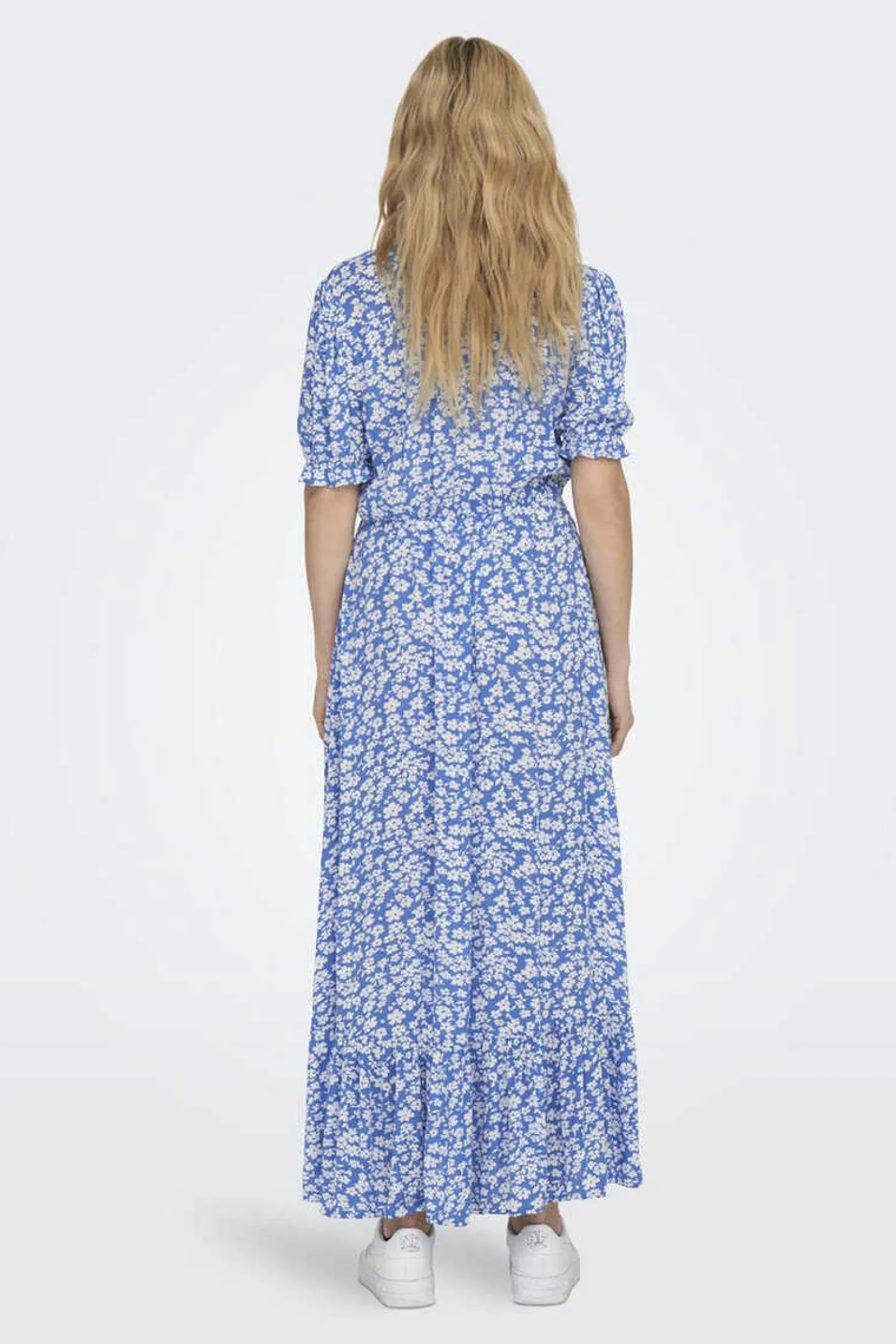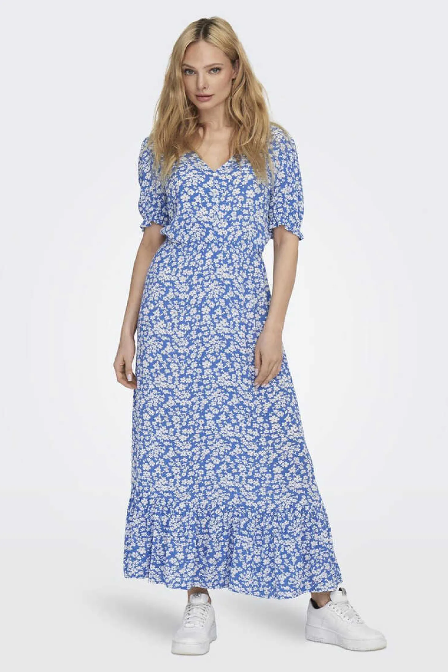 Vestido Comprido De Manga Curta Com Decote Em V.
