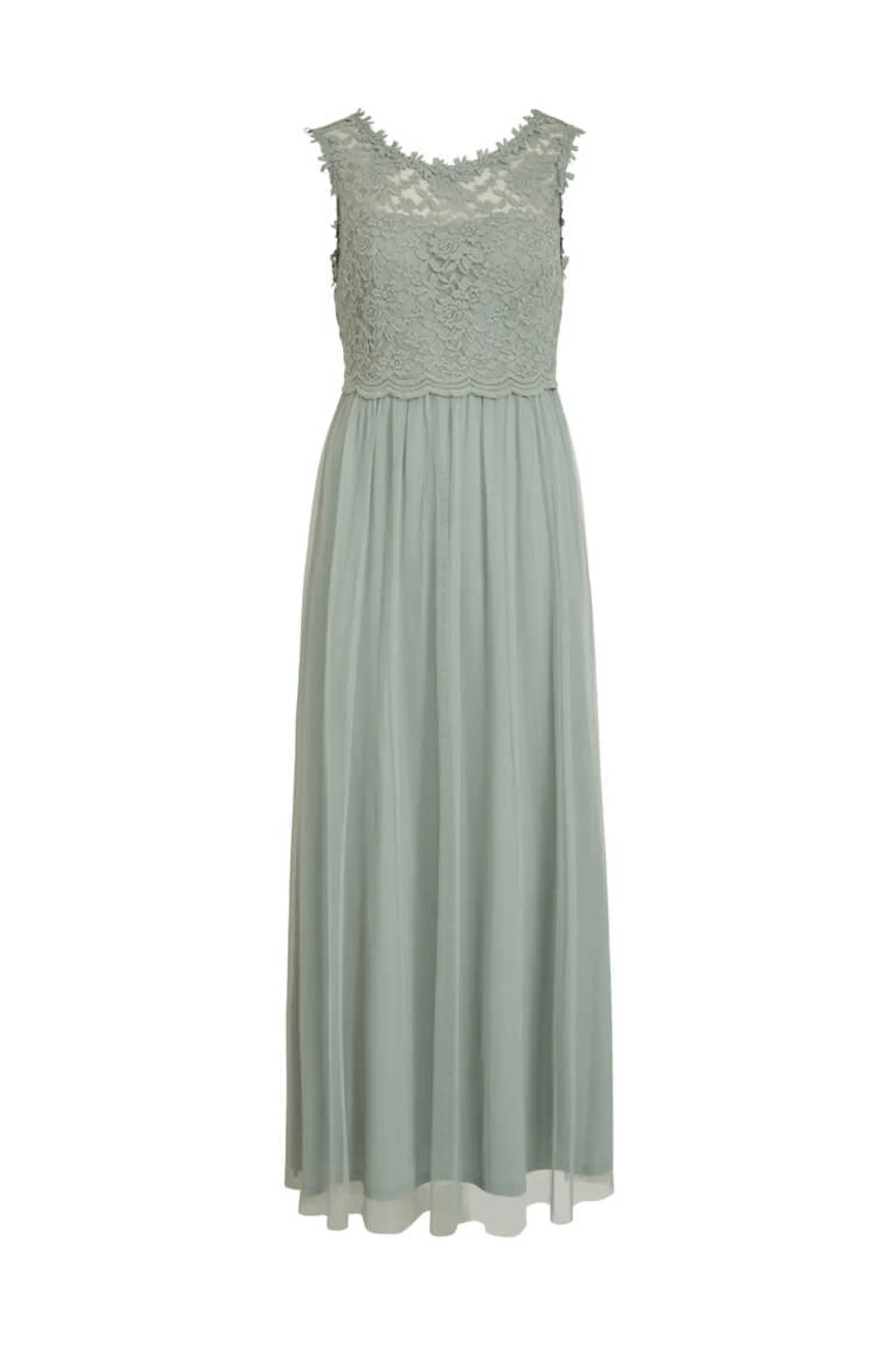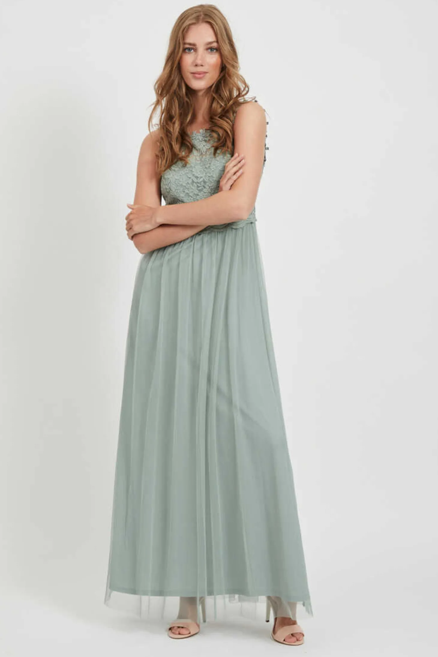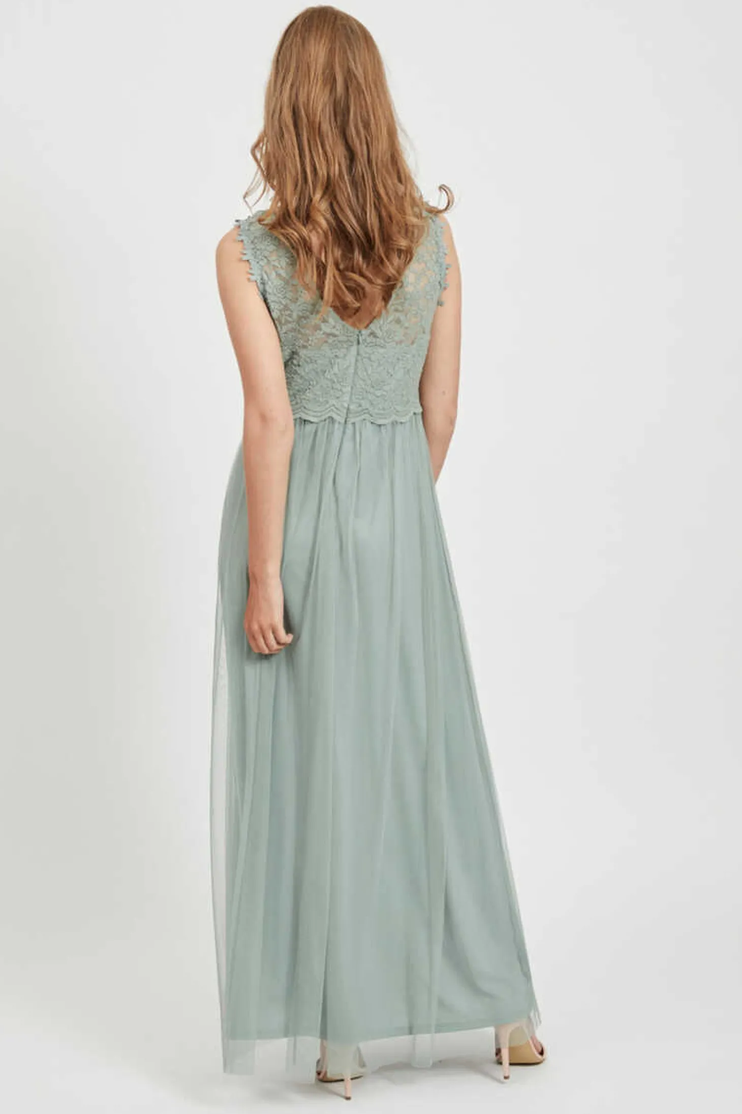 Vestido Comprido.Corpo Sem Mangas, Decote Redondo E Pormenor De Renda. Saia De Tule Com Roda.