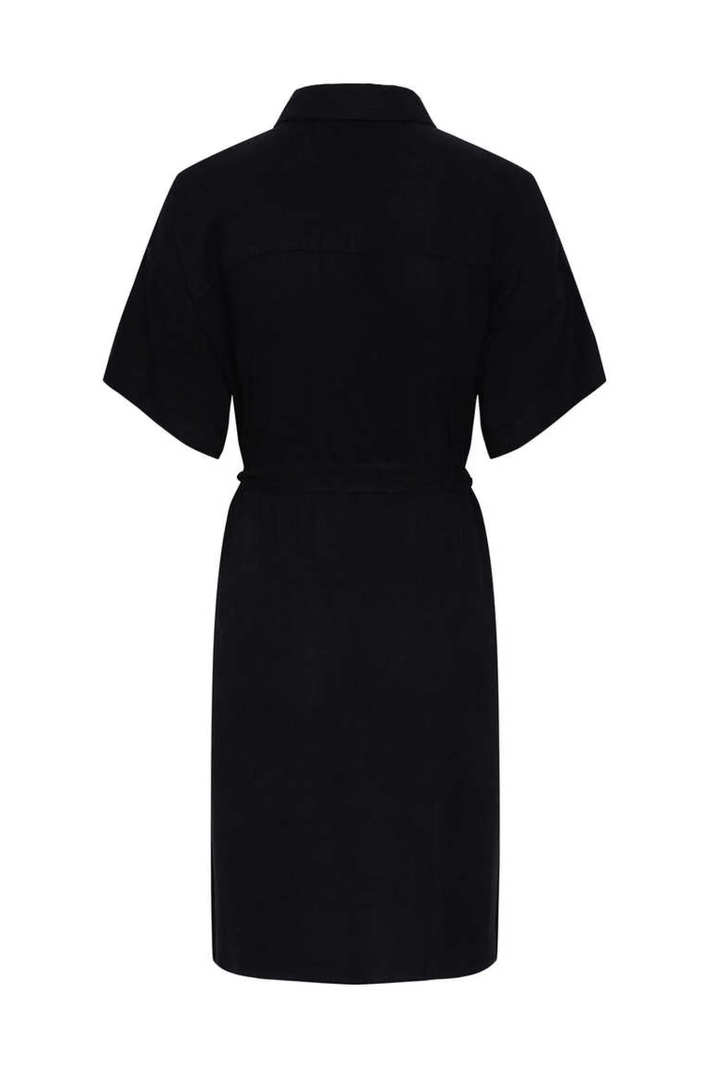 Vestido Curto Abotoado Na Parte Frontal, Detalhe De Laco Na Cintura E Manga Curta. Gola Camiseira.