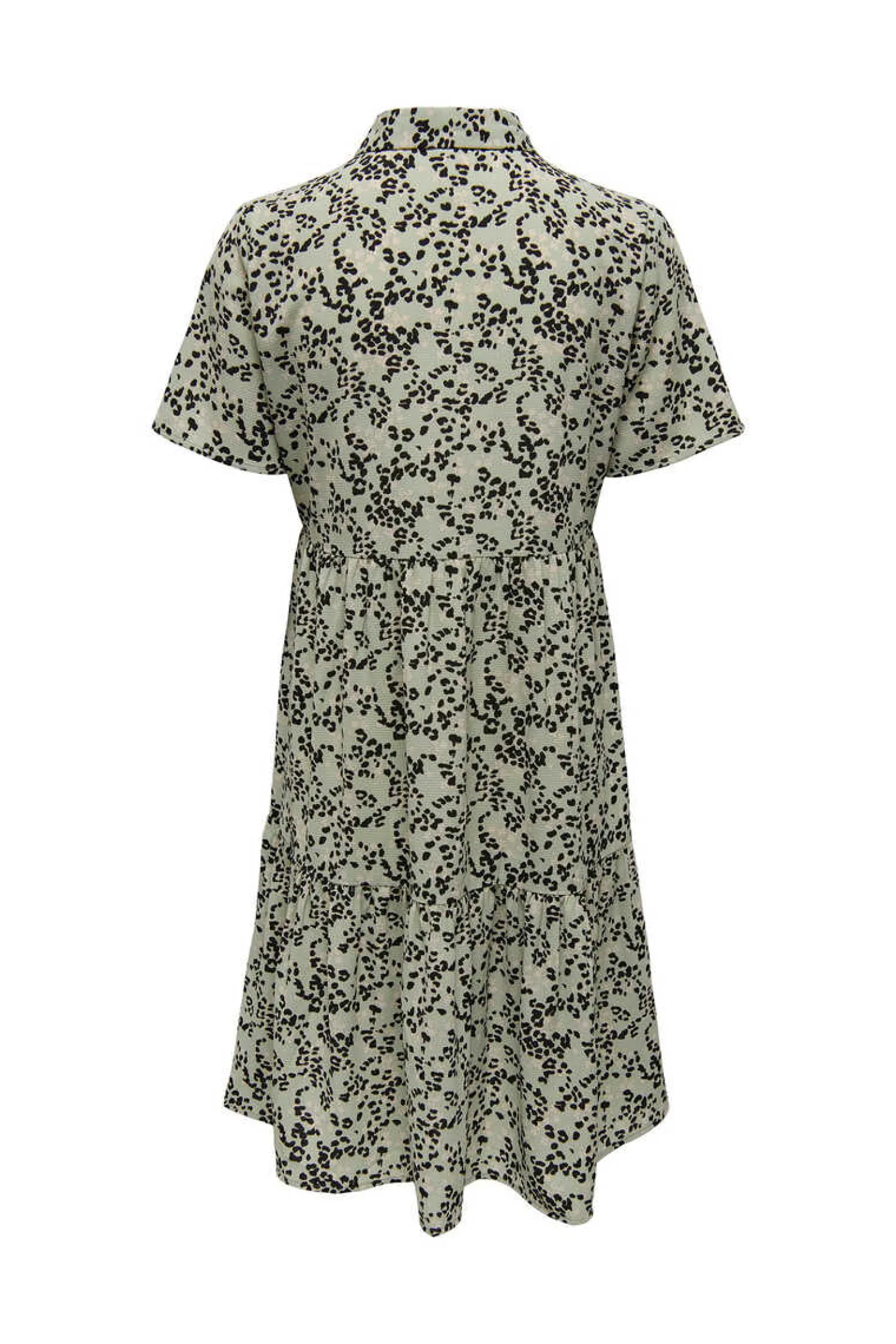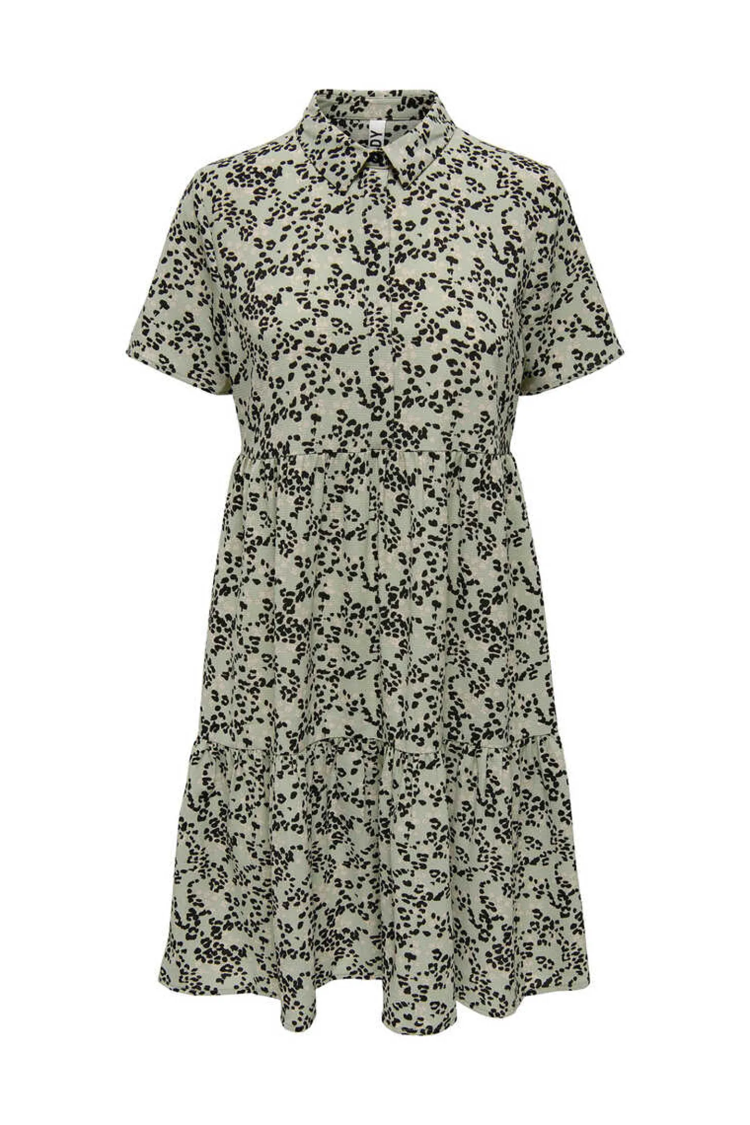 Vestido Curto Camiseiro Estampado Com Cintura Elastica, Fecho De Botoes Frontais, Gola Camiseira E Acabamento Com Pregas.