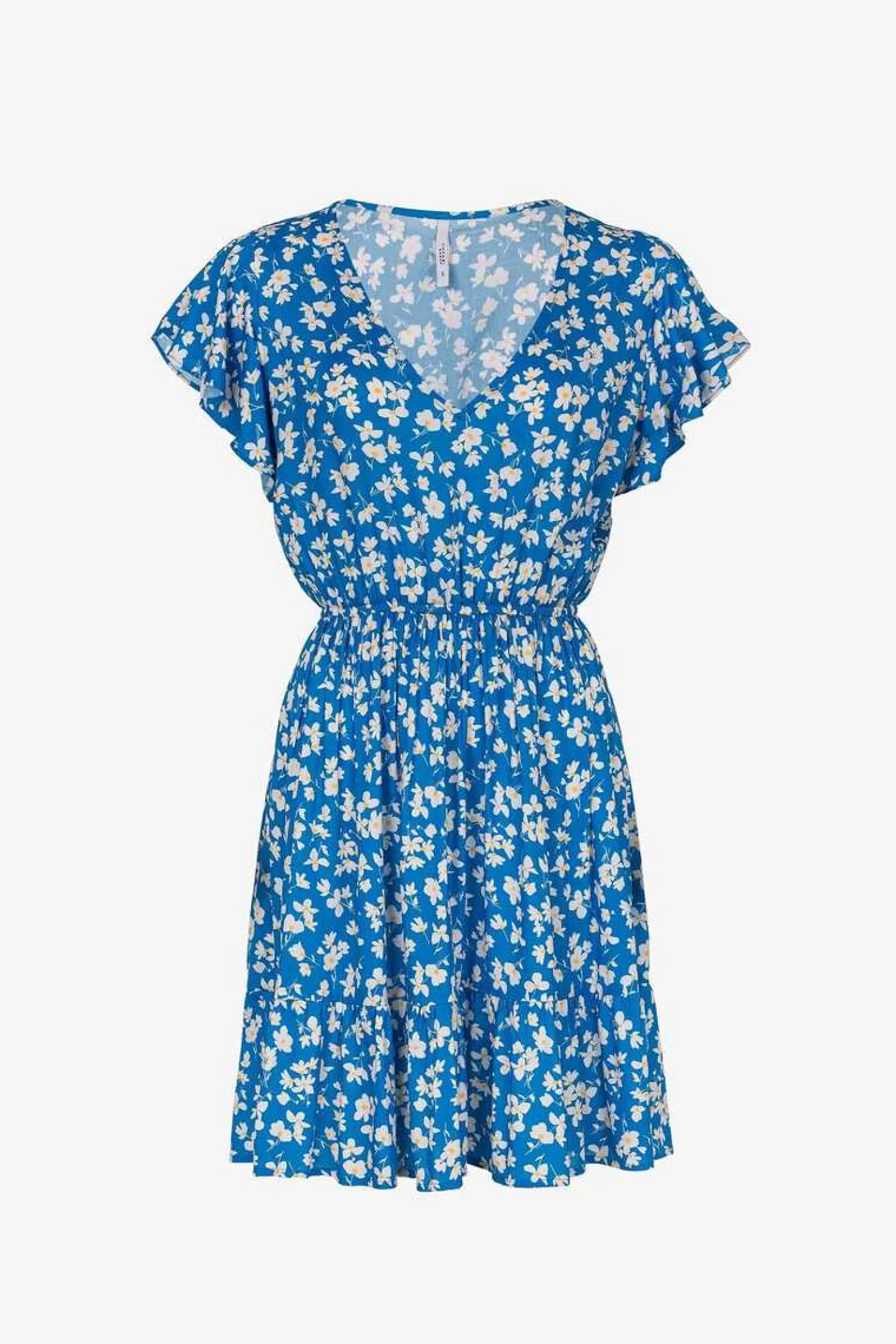 Vestido Curto, De Decote Em Bico E Manga Curta.