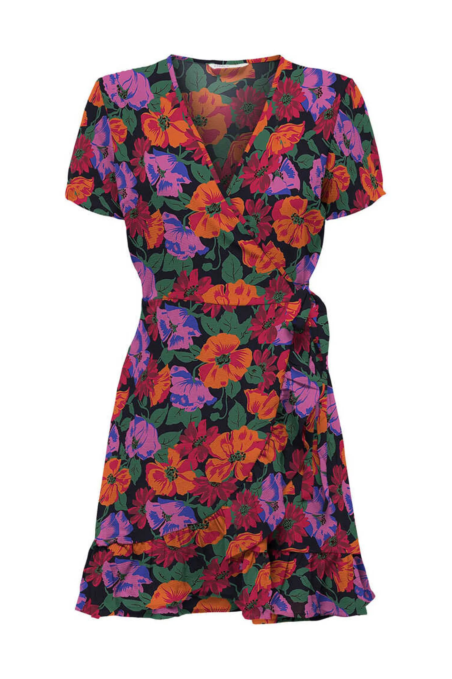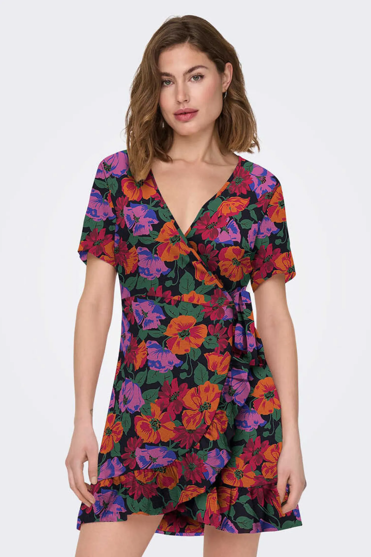 Vestido Curto Cruzado De Manga Curta