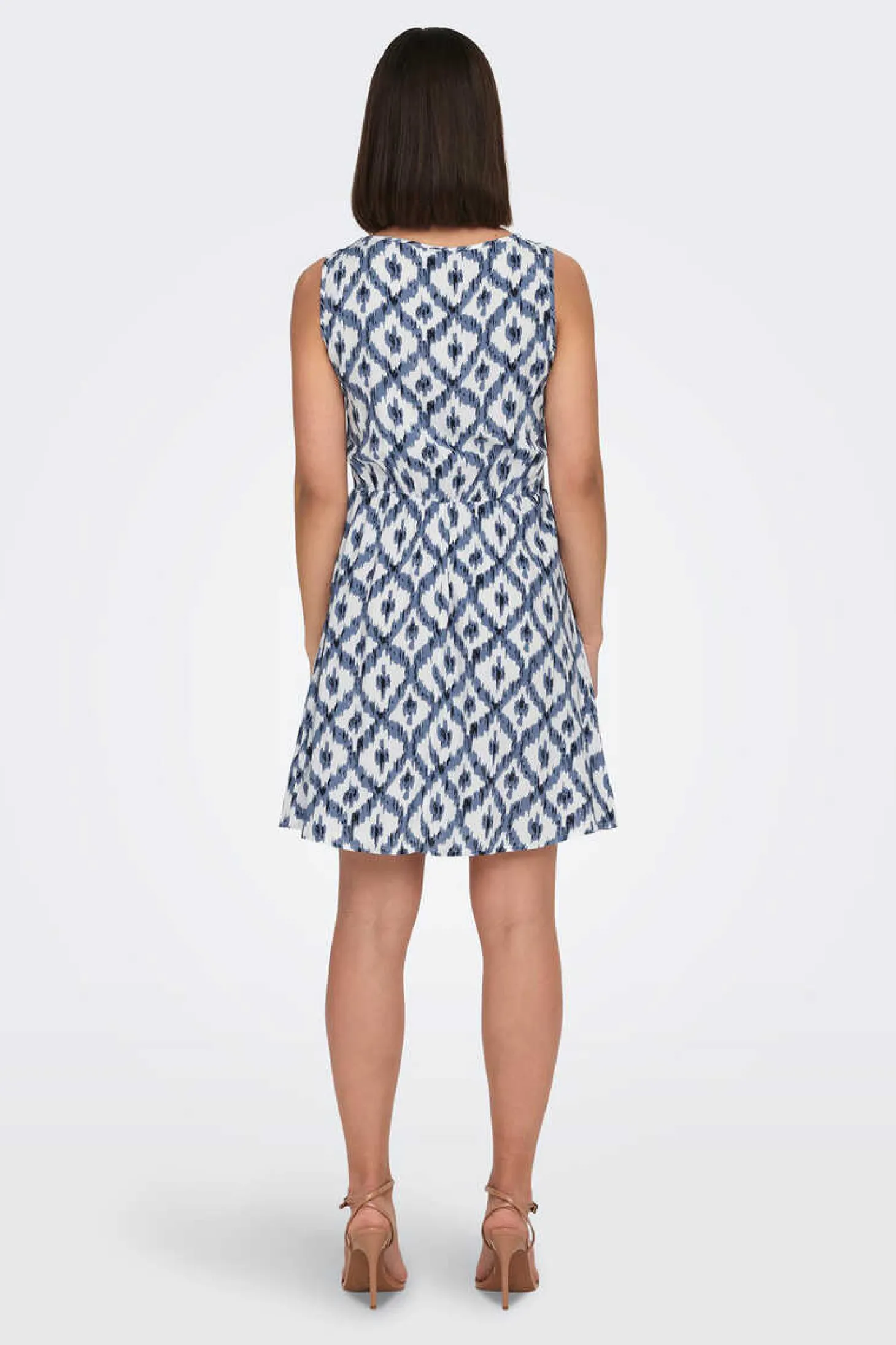 Vestido Curto Estampado E Mangas Com Alcas Ajustaveis. Gola Redonda E Corte Na Cintura. Tecido Sustentavel Lenzing Ecovero.