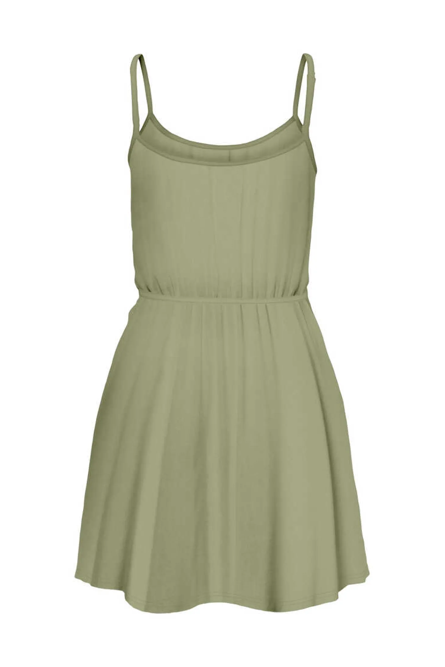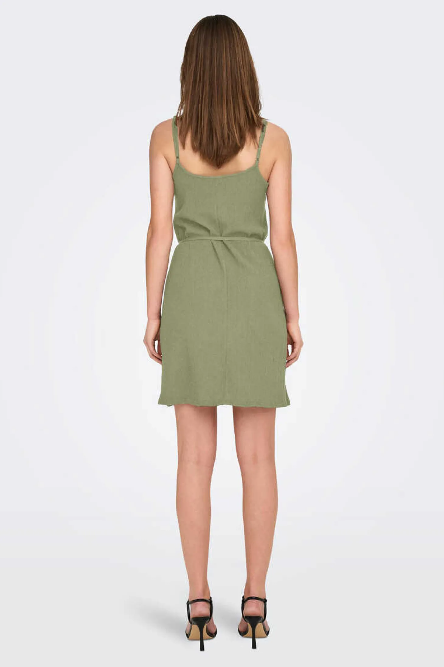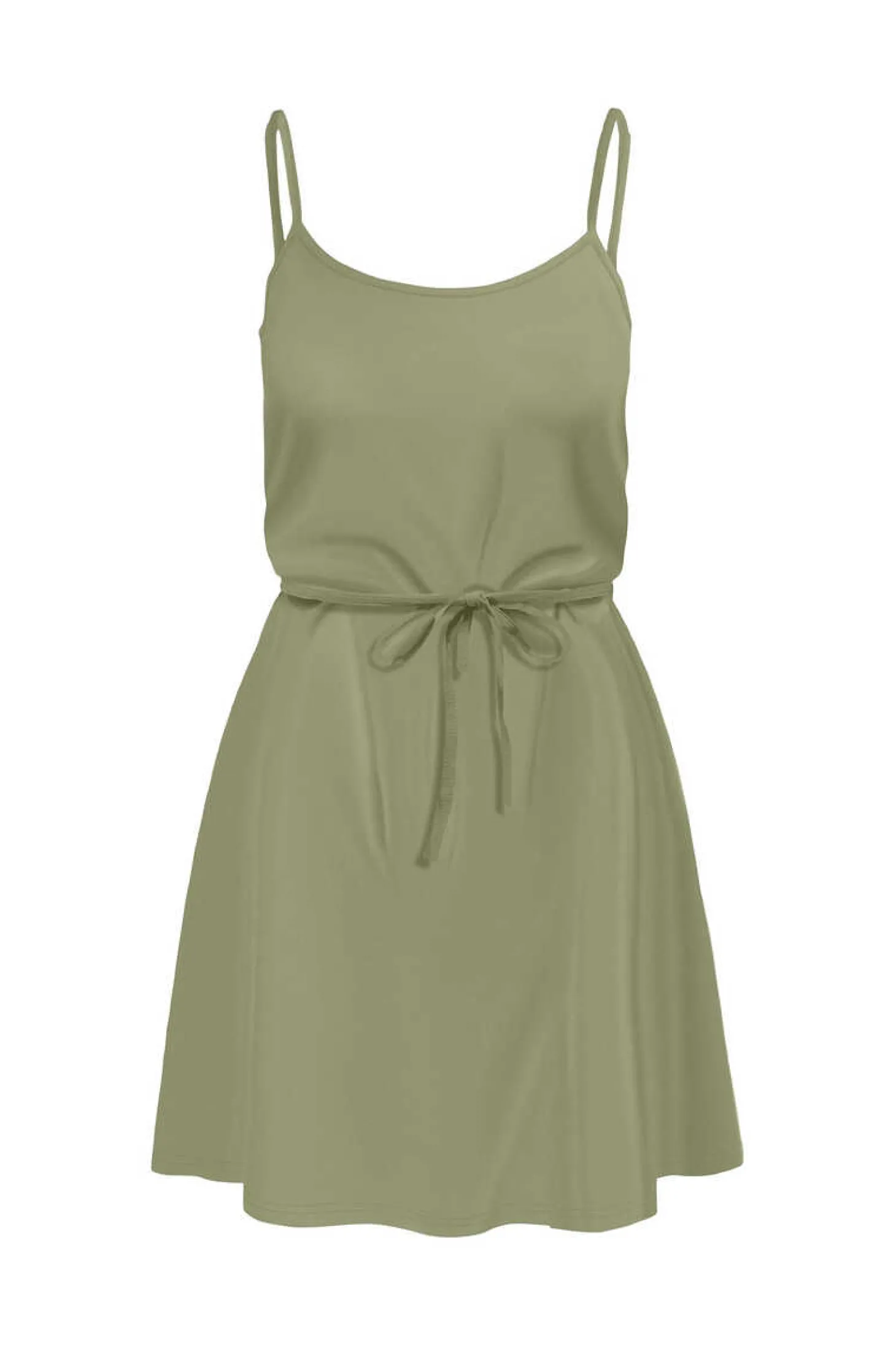 Vestido Curto Em Tecido Suave Com Gola Redonda, Alcas Esparguete. Costura Na Cintura Com Lacada Do Mesmo Tecido E Saia Com Roda.