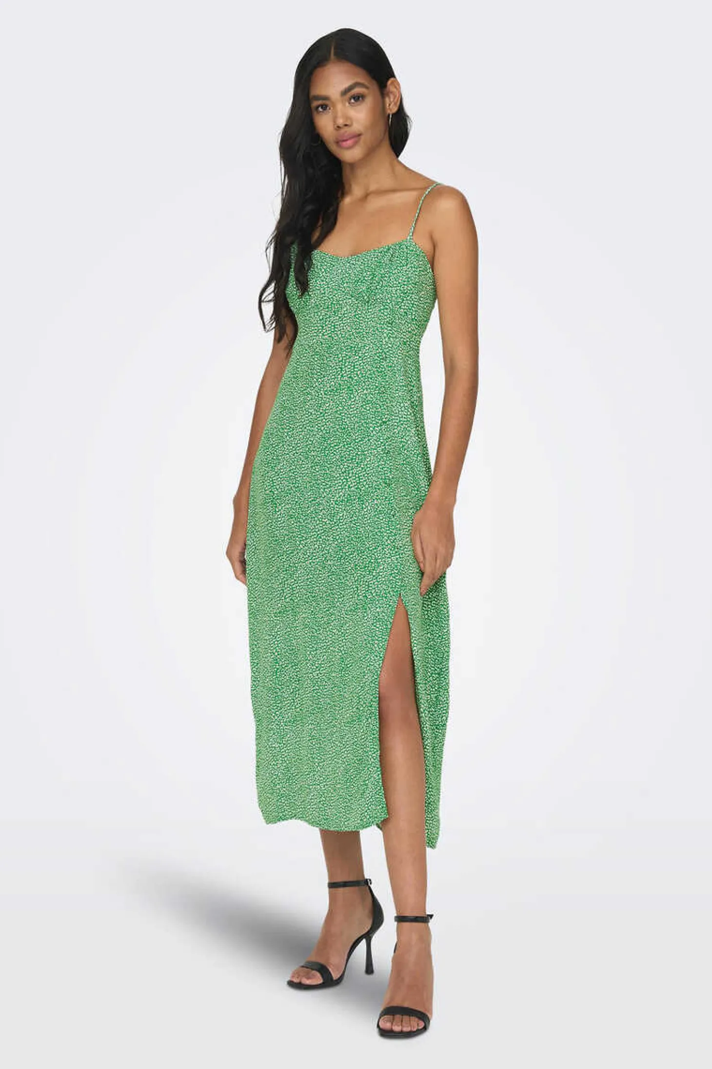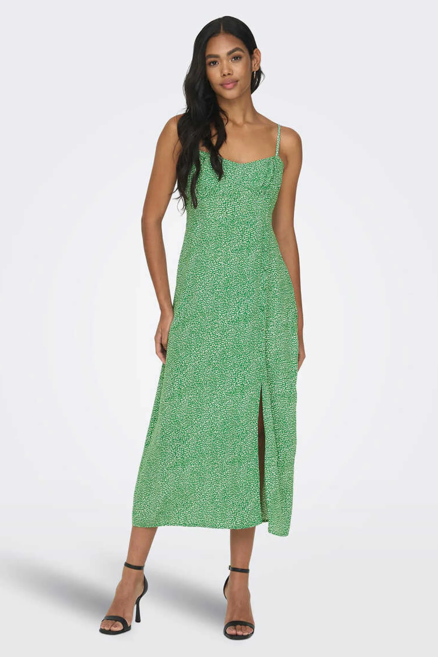 Vestido Midi De Alcas Com Estampado De Flores E Abertura Lateral Com Botoes.