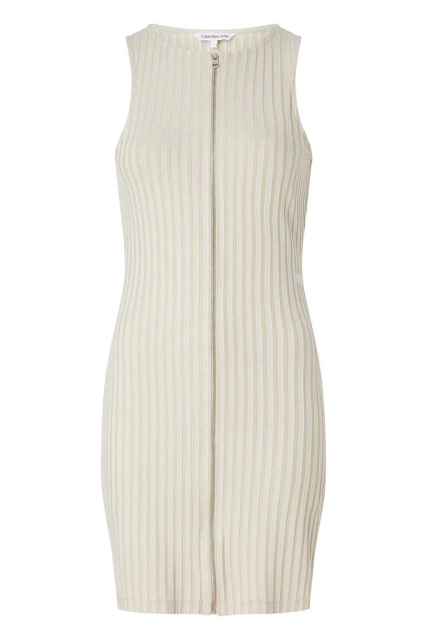 Vestido De Canelado Com Fecho-Eclair E Logo Na Parte Dianteira