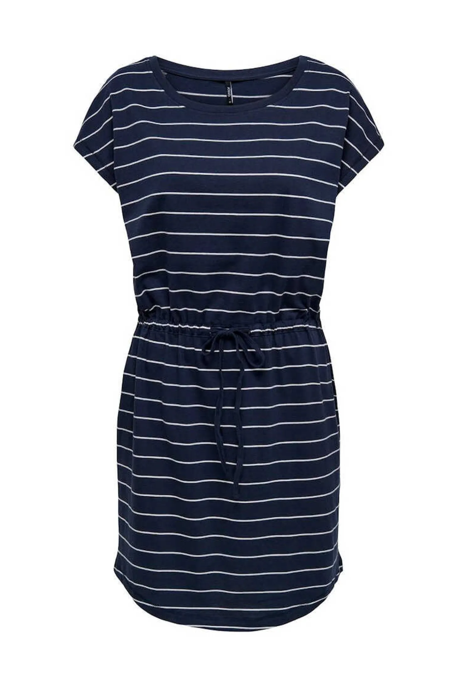 Vestido De Manga Curta Com Corte Folgado, Colarinho Redondo. Cordao De Ajuste Na Cintura.