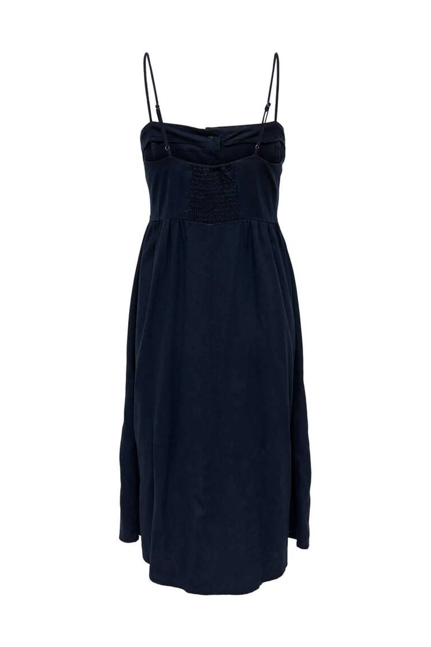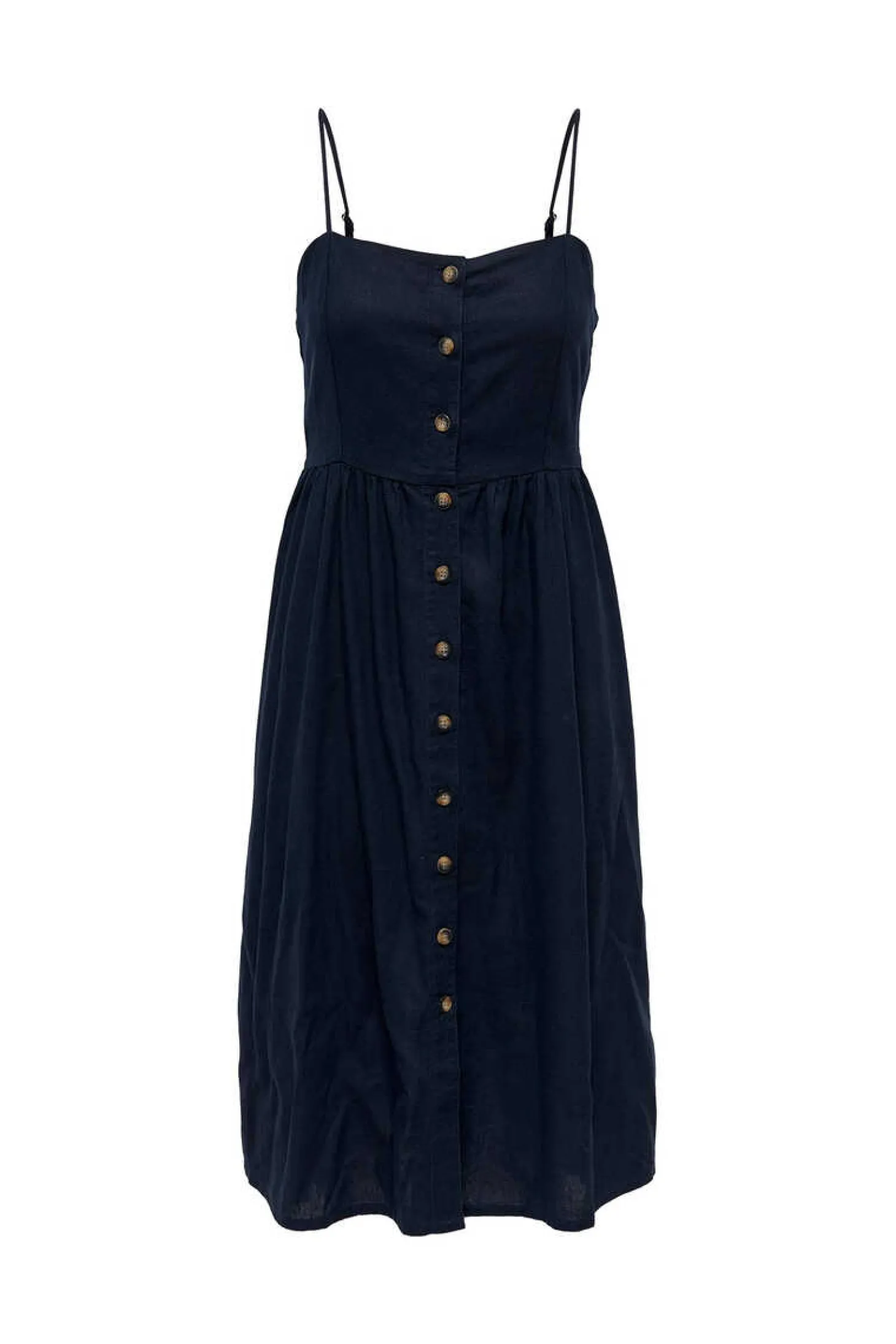 Vestido De Alcas Em Mistura De Linho. Fecho A Frente De Botoes.