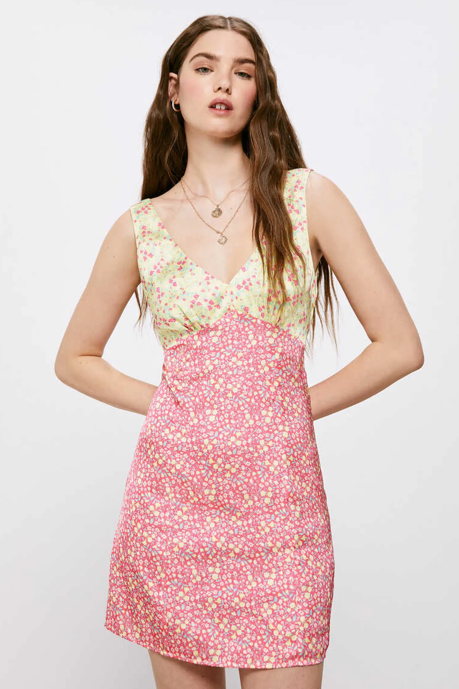 Vestido Curto De Alcas, Com Decote Em V Na Frente E Nas Costas, Com Fecho-Eclair Na Lateral, Saia Com Roda Com Detalhe De Abertura Na Lateral, Com Estampado Mix … De Flores.Ver Mais