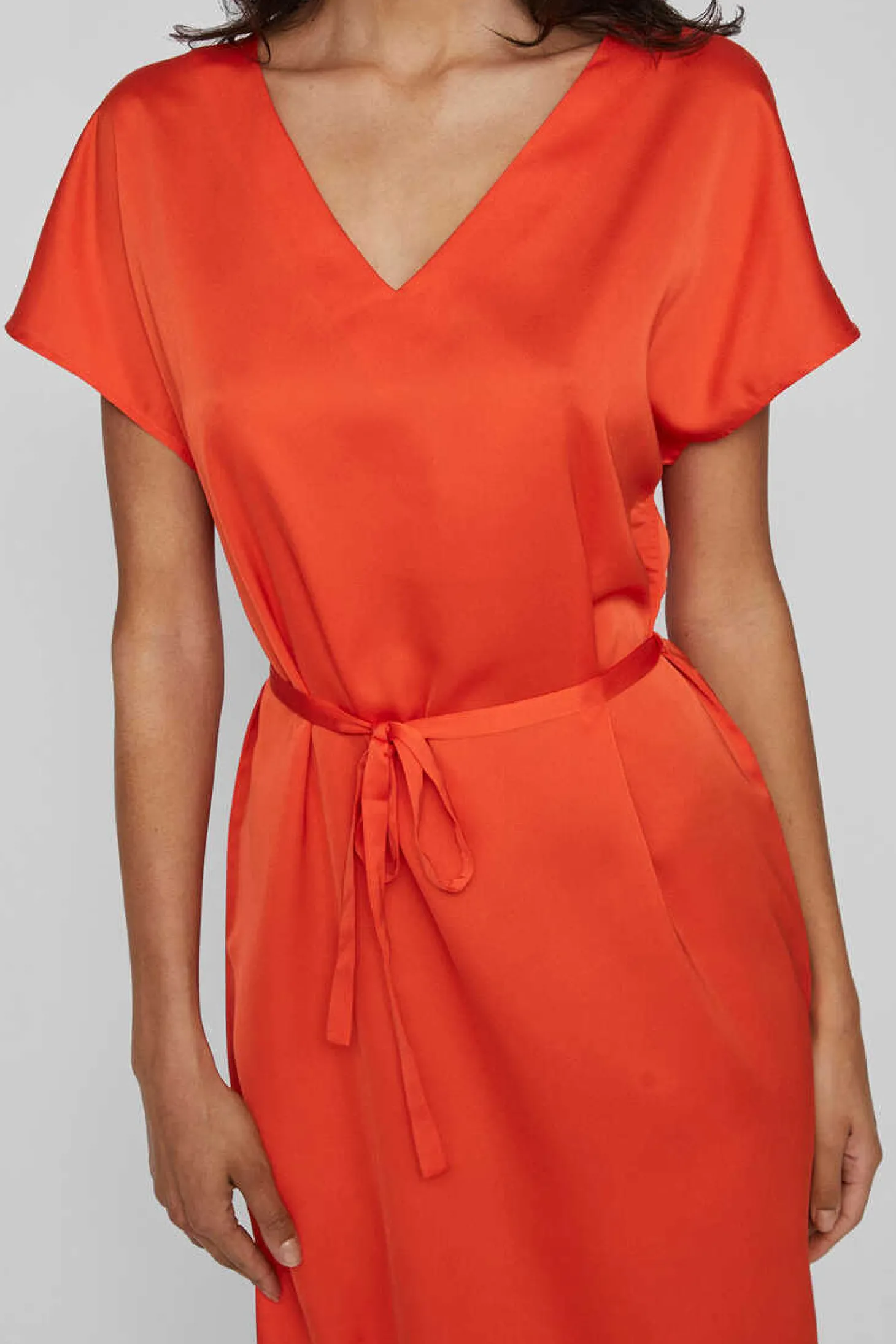 Vestido Midi Acetinado De Manga Curta Caida. Decote Bico E Abertura Lateral Na Bainha. Lacada Na Cintura. Este Artigo Esta Confecionado Com Fibras Sinteticas Re … Cicladas. Ver Mais