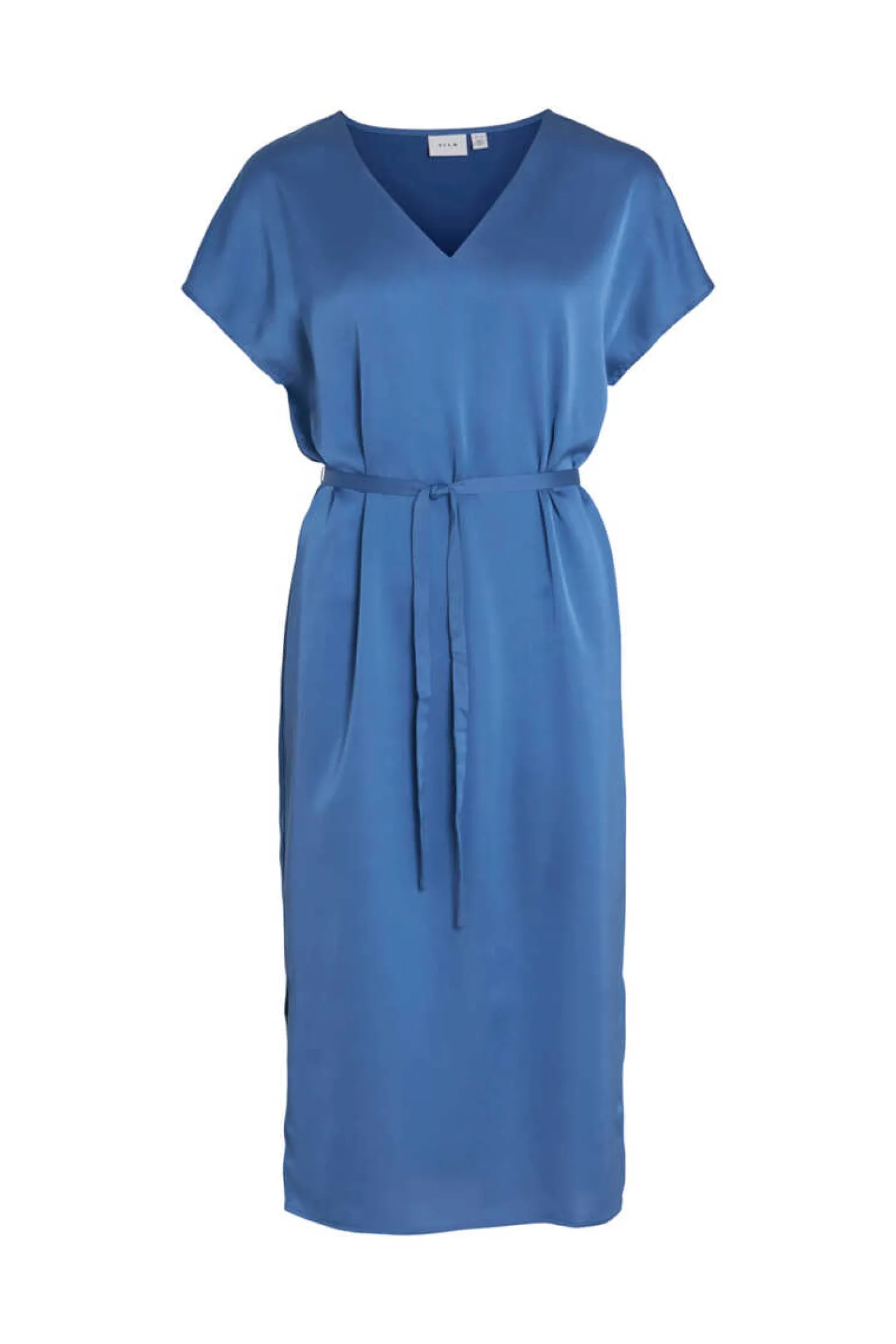 Vestido Midi Acetinado De Manga Curta Caida. Decote Bico E Abertura Lateral Na Bainha. Lacada Na Cintura. Este Artigo Esta Confecionado Com Fibras Sinteticas Re … Cicladas. Ver Mais