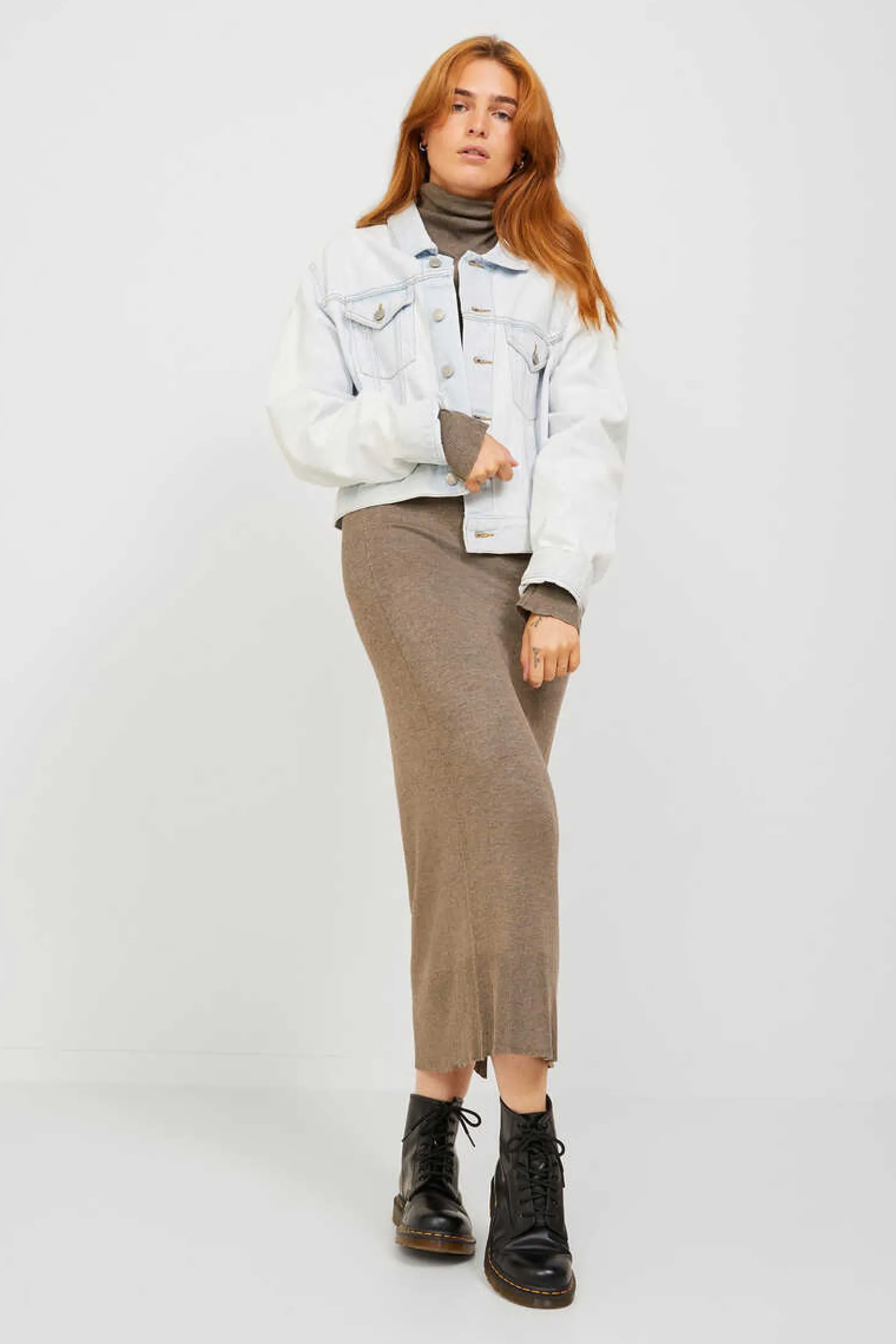 Vestido Midi Slim Fit Com Gola Dobrada E Manga Comprida. Tecido De Malha. Estilo Casual E Facil De Usar Todo O Dia.
